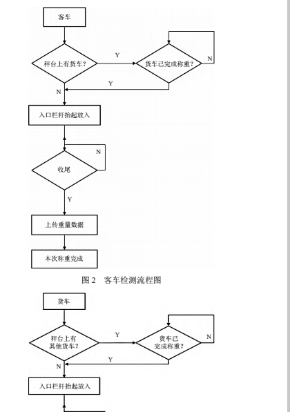 如圖 2 所示,當車輛預讀天線檢測到通過車輛為客車時,若秤臺上無貨車,則前置欄桿抬起,車輛連續通過。若秤臺上有貨車,則待貨車完成稱重后,欄桿抬起,客車進入。