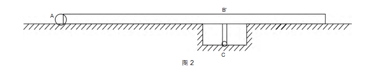 液壓翻版一般是3.5米寬,18米長的平臺,可以承載需要卸料的汽車,載重一般在60t以上,一端(卸料端)的兩側是固定軸端(如圖2所示中的A點,)翻板以此點為固定圓心頂起,在平臺中間部位(如圖2所示中的B點)的兩側設置兩個多級液壓缸,作為頂升動力,液壓缸的固定端固定在設備基礎上(如圖2所示中的C點)。