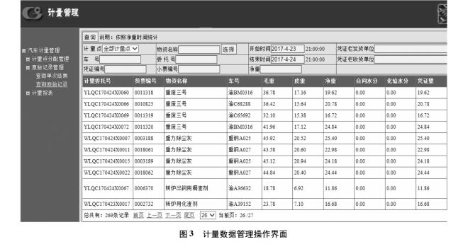 該分系統接收到計量任務后,計量人員通過界面視頻核對車輛信息,檢查計量委托及計量類型、收發貨單位等,確保信息準確后保存數據,數據包含車輛信息、視頻信息、稱重信息等,數據同步上傳至中心數據庫。
