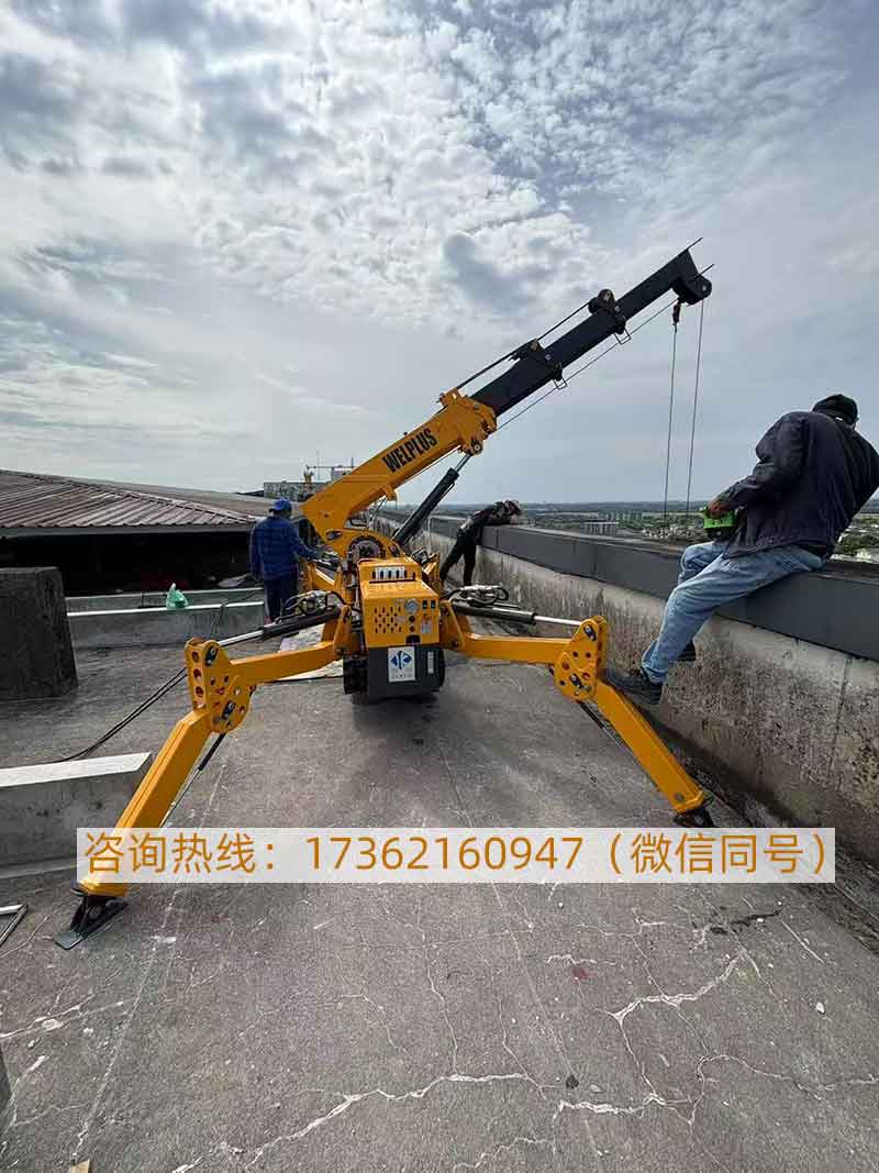 1.2噸蜘蛛吊車是一款專為狹窄空間和復雜工況設計的輕型起重設備,結合了蜘蛛式底盤的穩定性和吊車的起重能力,自重僅有1.4噸,特別適合在樓頂施工使用。其緊湊的設計和出色的機動性使其成為現代輕型起重作業的理想選擇。